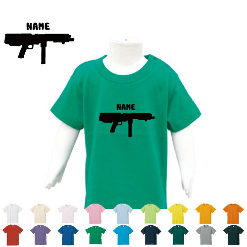 「機関銃」名入れTシャツ/ベビー服、キッズ服、お名前、子供服、キッズウェア、こども服、入園、入学、新学期、幼稚園、保育園、小学校、、夏服【ネコポス発送可】マシンガン