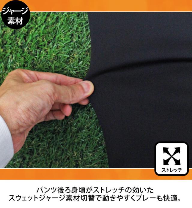 後ろ身頃はストレッチの効いたスウェットジャージ素材切替。