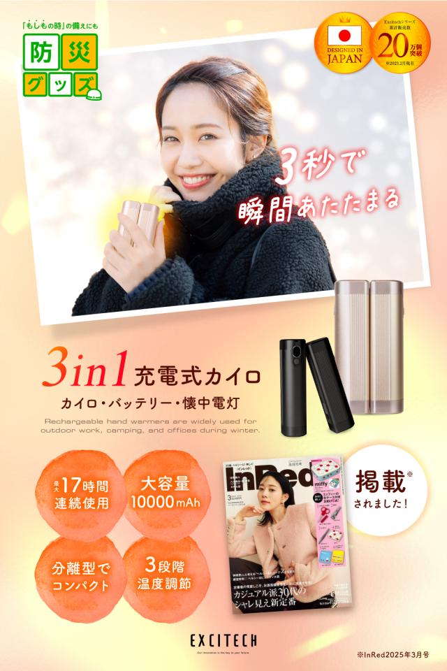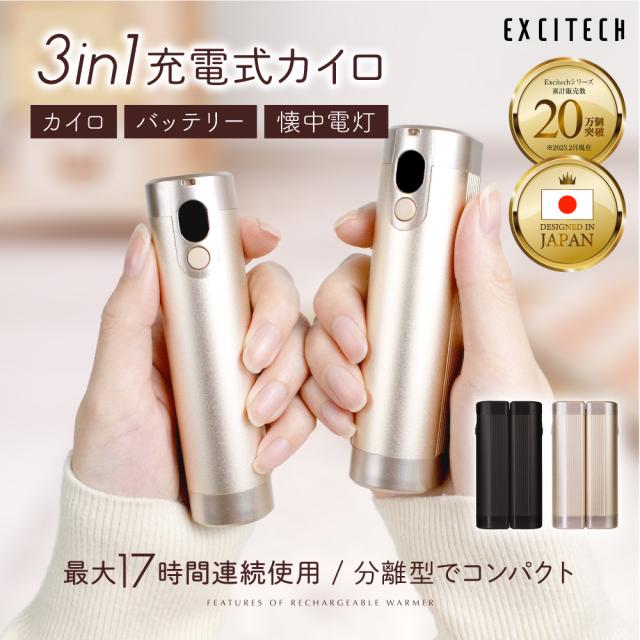充電式カイロ (1台3役) モバイルバッテリー 懐中電灯 分離式 10000mAh 防災 軽量 3段階温度調節 電気カイロ 17時間連続使用 あったか 送料無料 誕生日 ギフト プレゼント EXCITECH