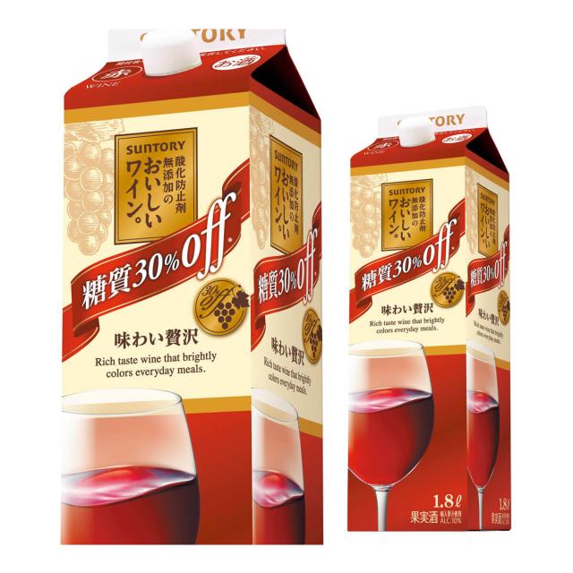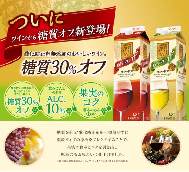 時間指定不可 酸化防止剤無添加のおいしいワイン。糖質30%オフ(赤)サントリー 1.8L 6本入 赤 ワイン 紙パック 長S
