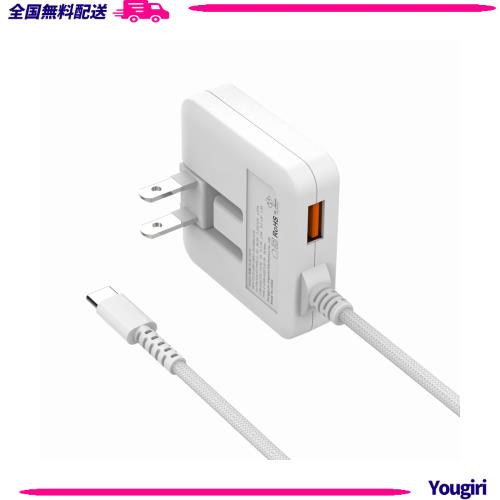 USB充電器 Type-C PD 20W 急速充電器 USB-Cケーブル一体型(超薄型/編みケーブル&QC3.0 USB-Aポート/折畳みプラグ/PSE認証済) タイプc AC