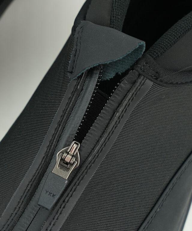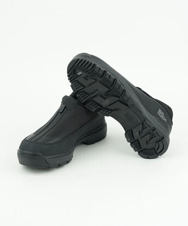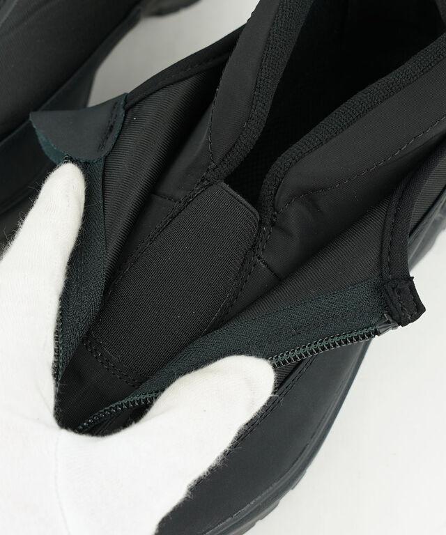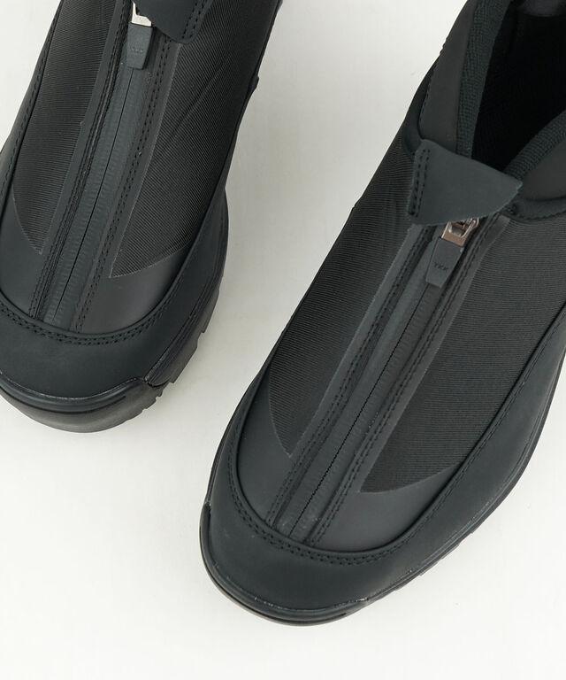 アッパーは着脱しやすいジッパーを搭載しながら、撥水加工を施したマテリアルで