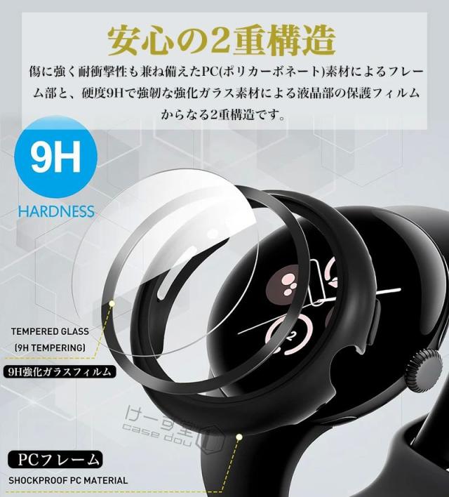 Google Pixel Watch 3 41mm 45mm 保護ケース ガラスフィルム Google Pixel Watch 2 ケース 耐衝撃 Google Pixel Watch 保護カバー ピクセルウォッチ 3 2 1 ケース watch3 watch2 41 mm 強化ガラス フィルム 全面保護 スマートウォッチカバー 液晶フィルム 傷防止 高透過率