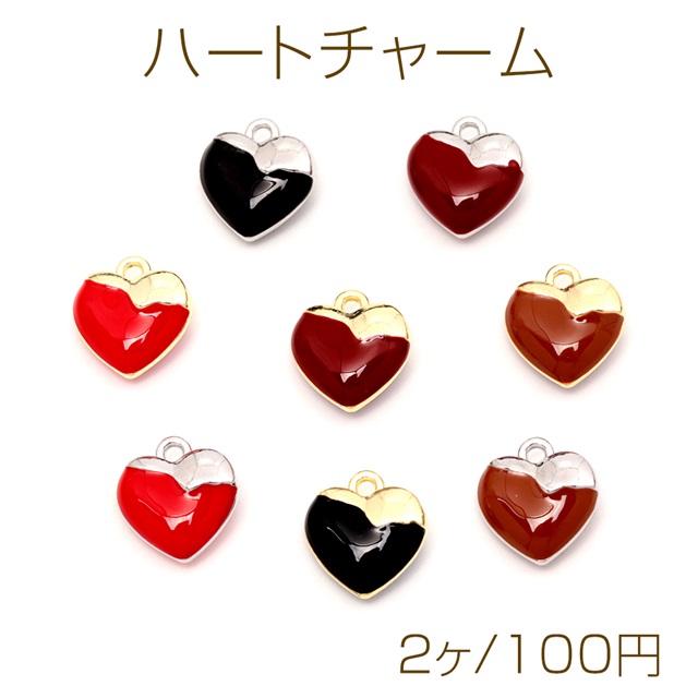ハートチャーム ぷっくりハートチャーム はーとチャーム メタルチャーム エポチャーム 全8色 約11×12mm (2ヶ)