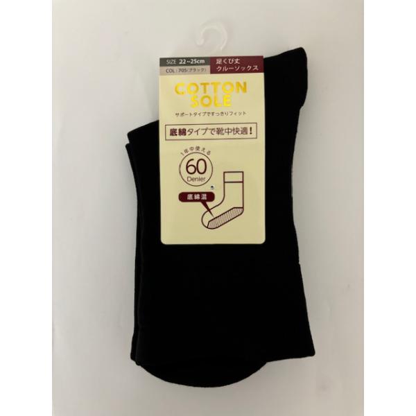 足裏綿 クルーソックス60デニール・ブラック・1足 くるぶし丈 暖か足底綿、靴下、一年中快適な履き心地、レディースサイズ 22-25cm