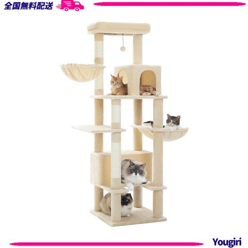 PAWZ Road キャットタワー 多頭飼い 大型猫用 スリム 猫タワー 大型 ベージュ 170cm 爪研ぎ 麻紐 ハンモック 据え置き 省スペース 人気