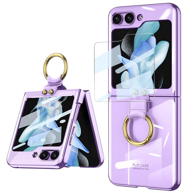 FODDOM Galaxy Z Flip6 ケース リング付き 純正 メッキ PC クリスタルカバー ガラスフィルム取り外し可能/レンズ保護/傷防止/耐衝撃/ワイ