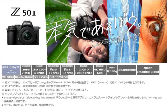 | Z50II ダブルズームキット APS-Cサイズミラーレスカメラ スペック情報 | |