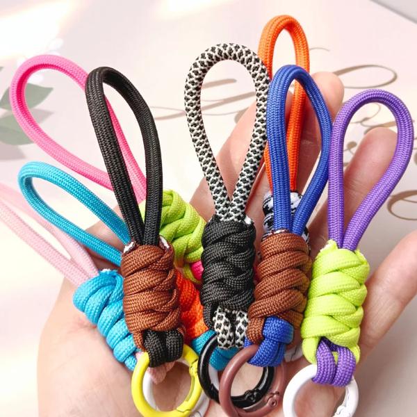 男性と女性のためのカラフルな編みこみのストラップキーホルダー 紛失防止ナイロンコード 車のバックパックのペンダント ファッションアクセサリー ギフト