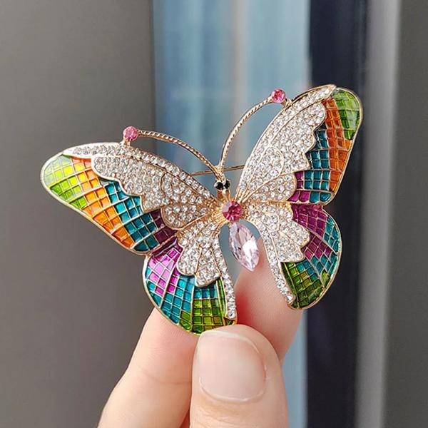 女性のための豪華なカラフルなラインストーンバタフライブローチ 昆虫ブローチ 金属ピン カジュアルパーティー オフィススーツコートジュエリー