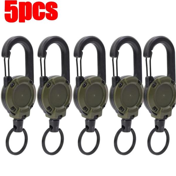 頑丈な格納式プルバッジ IDリールカラビナキーホルダー スチールワイヤーロープ バックルキーホルダー 屋外キーホルダーツール 1〜5個