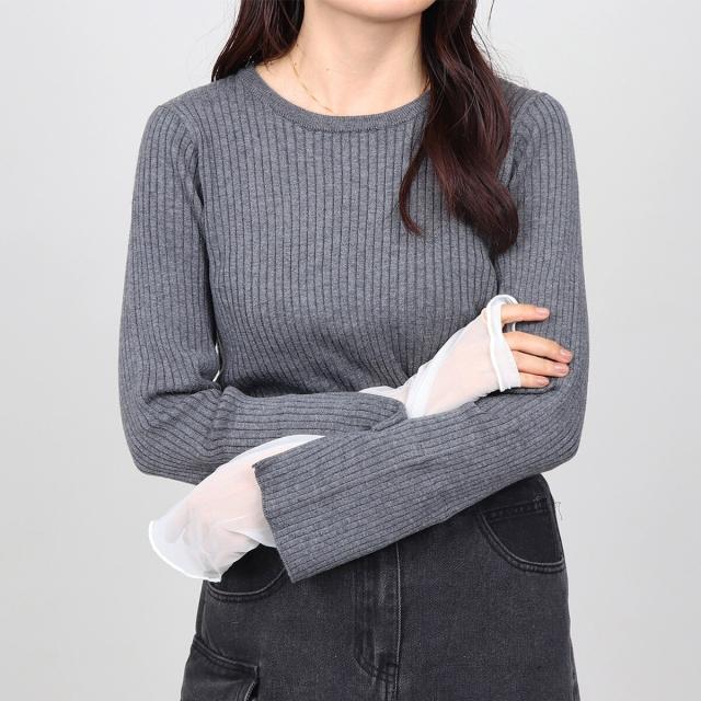 ベース(BASE)/チュールレイヤードリブニットトップス