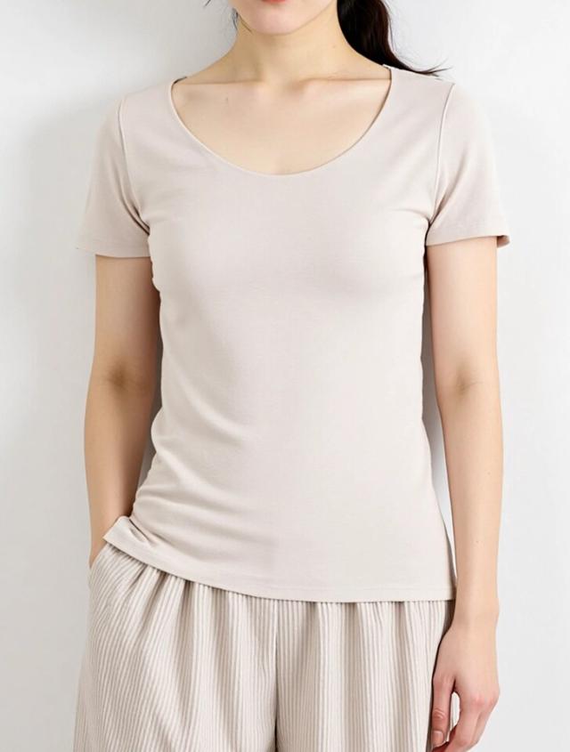 すっきりとしたシルエットで様々なトップスと合わせやすい、半袖のあったかインナー。柔らかな肌触りと心地よいフィット感で、着心地の良さも魅力です。薄手ながらもあたたかく、これからの寒い季節に活躍すること間違いなしのアイテムです。