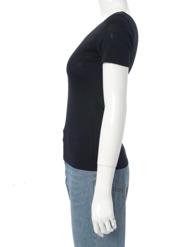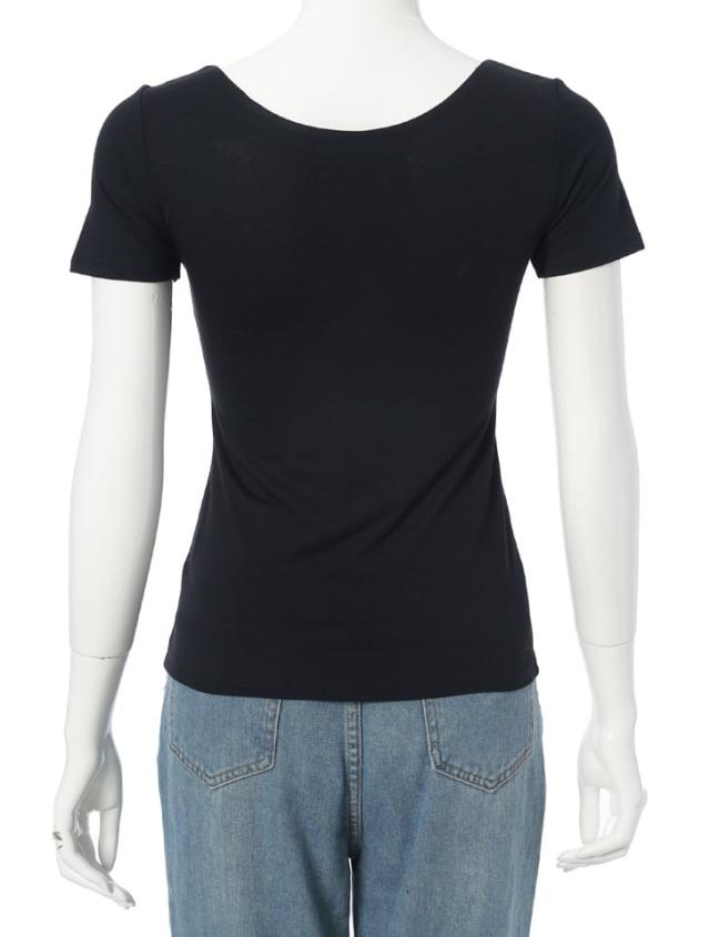 襟ぐりを圧着仕様にすることで厚みが抑えられ、スッキリとした着心地と美しい仕上がりを実現。