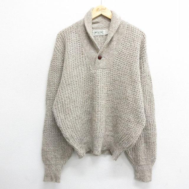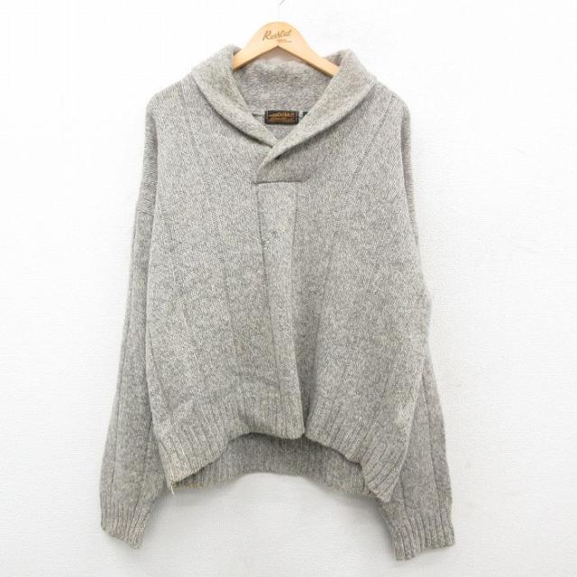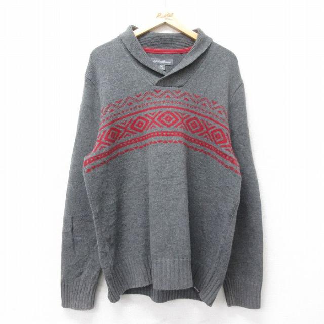 【商品名】 XL★古着 エディーバウアー 長袖 セーター メンズ 90年代 90s 無地 ウール ショールカラー グレー 霜降り