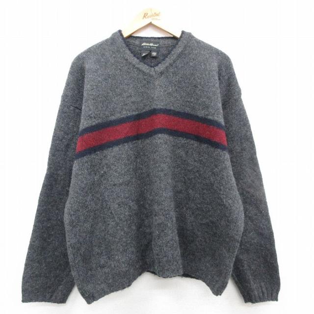 古着 エディーバウアー 長袖 セーター メンズ 90年代 90s 無地 ウール ショールカラー グレー 霜降り XLサイズ 中古 ニット ト 中古 古着