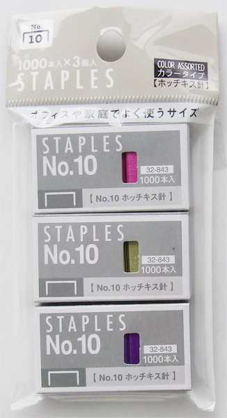 カラータイプホッチキス針 No.10 1000本×3箱入 (100円ショップ 100円均一 100均一 100均)