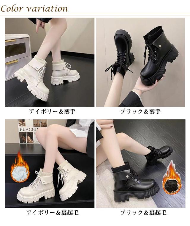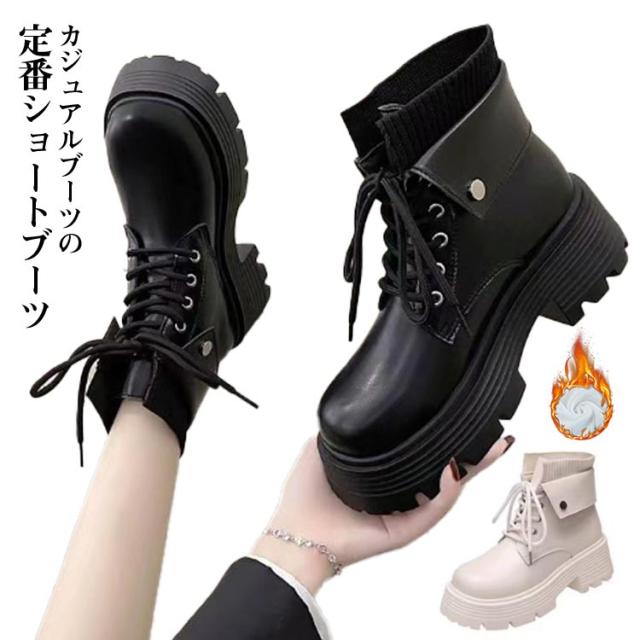 レディース 厚底ブーツ カジュアルブーツ 歩きやすい ショート シューズ レースアップブーツ 女性用 編み上げブーツ レディース ショート丈 裏ボア 裏起毛 エンジニアブーツ レザー ハイカット 柔らかい 滑り止め アウトドア 通勤 通学