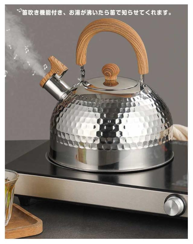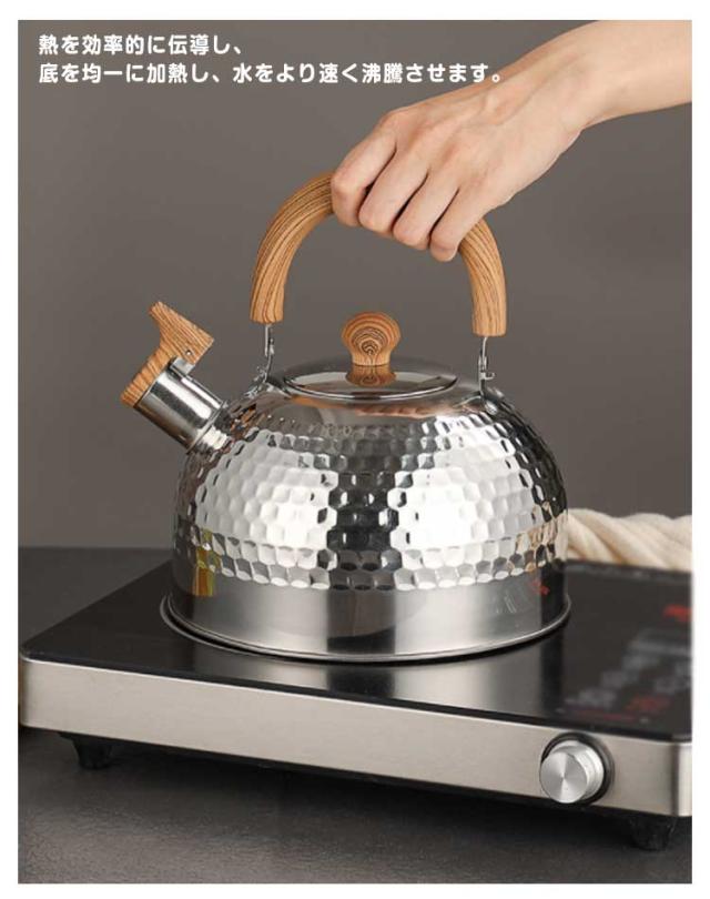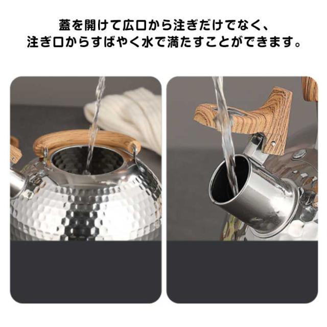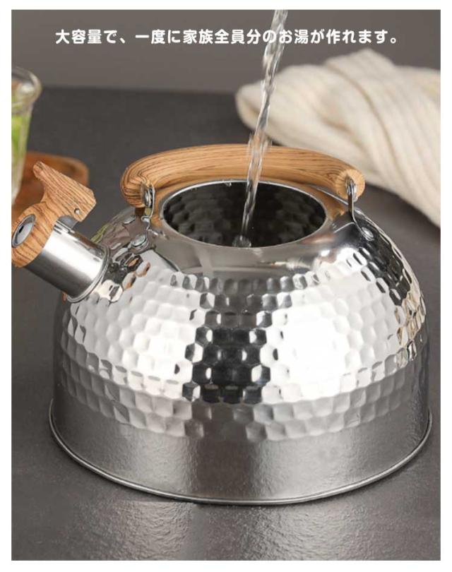 ヤカン 笛吹きケトル 広口タイプ ステンレス製 2L 3L 4L IH対応 大容量 簡単開閉 ガス火対応 ケトル 湯沸かし 洗いやすい ティーポット 薬缶 耐熱ハンドル 業務用 キッチン用品 家庭用 コーヒー お洒落 キャンプ 送料無料