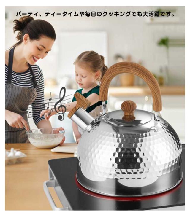 | 麦茶の煮出しに最適!ステンレス製の笛吹きケトルです。 大容量で、一度に家族全員分のお湯が作れます。 笛吹き機能付き、お湯が沸いたら笛で知らせてくれます。 ステンレス製を通じて作られることによる耐腐食性とサビ防止という機能を備えます。 手入れしやすい広口タイプで中まで洗えて衛生的です。 蓋を開けて広口から注ぎだけでなく、注ぎ口からすばやく水で満たすことができます。 熱を効率的に伝導し、底を均一に加熱し、水をより速く沸騰させます。 ガスコンロでもIHクッキングヒーター、電気セラミック炉でも使えます。 耐熱ハンドルを採用、やけどを避けてケトルを素手で掴むことができます。 パーティ、ティータイムや毎日のクッキングでも大活躍です。 | |