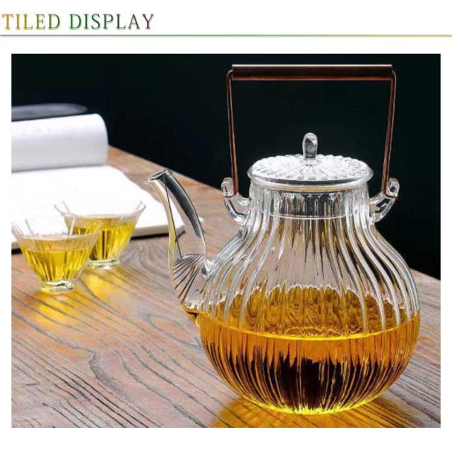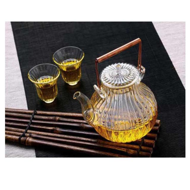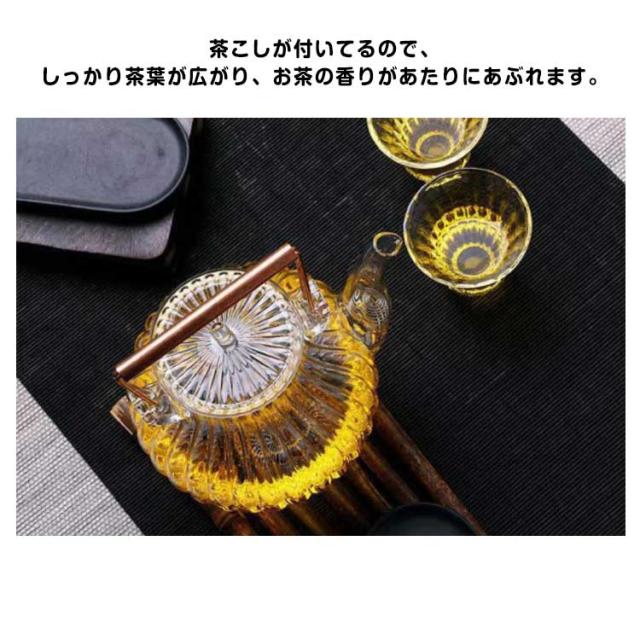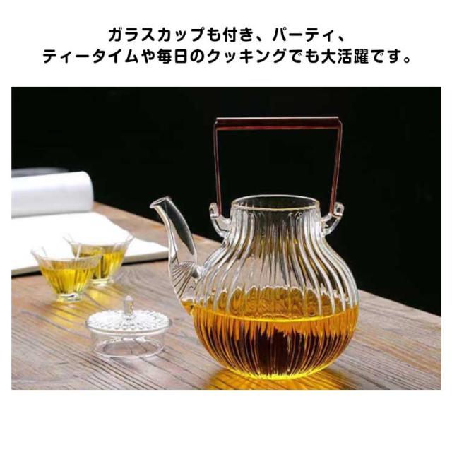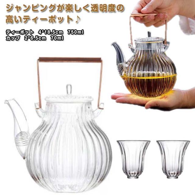 耐熱ガラス ティーポット 茶こし付き ガラスカップ 2個コップ ガラス製 透明ガラス 持ち手付き ジャンピング 紅茶ポット フルーツティー 花茶 工芸茶 ハーフティー 急須 大容量 湯沸かし 直火対応 家庭用 送料無料