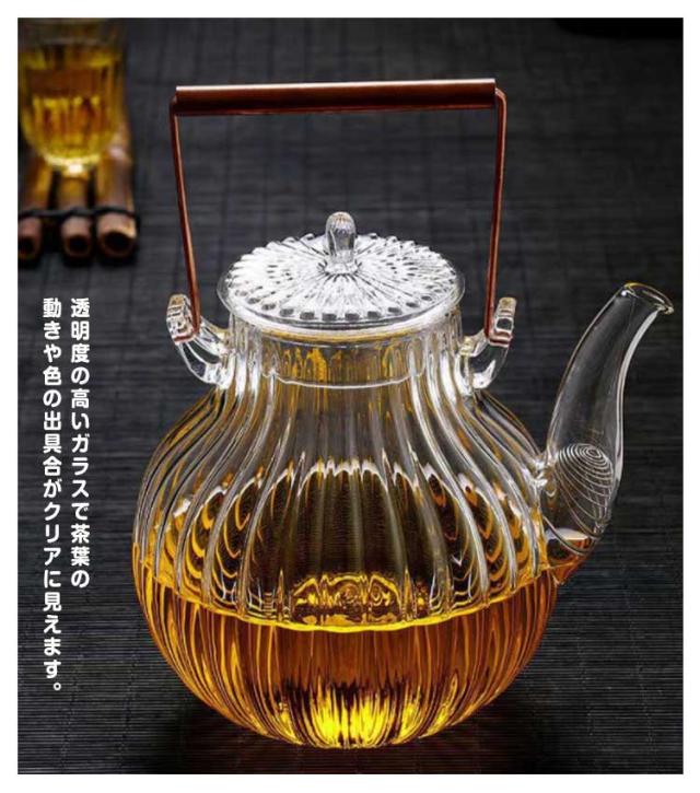 | ジャンピングが楽しく透明度の高いティーポット♪ 透明度の高いガラスで茶葉の動きや色の出具合がクリアに見えます。 茶こしが付いてるので、しっかり茶葉が広がり、お茶の香りがあたりにあぶれます。 ハンドルは大きくしっかりとした作りなので、安定してティーポットを持ち上げられるのがポイント。 ガラスカップも付き、パーティ、ティータイムや毎日のクッキングでも大活躍です。 ガラス製の急須は紅茶、ハーブティー、ティーバック、コーヒー、麦茶などを入れるのにも最適! | |