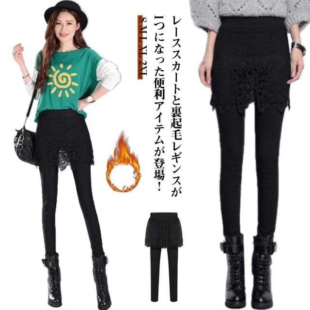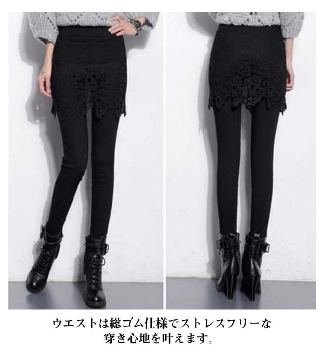 無地 レギンス 上品なレーススカート付きレギンス シンプル レディース レディース 秋冬 裏起毛スカート付きレギンス レギパン 10分丈レギンス レース ボトムス スカート付き レギンス ウエストゴム タイトスカート 裏起毛 冬服 ストレッチ オシャレ 美脚 着?せ