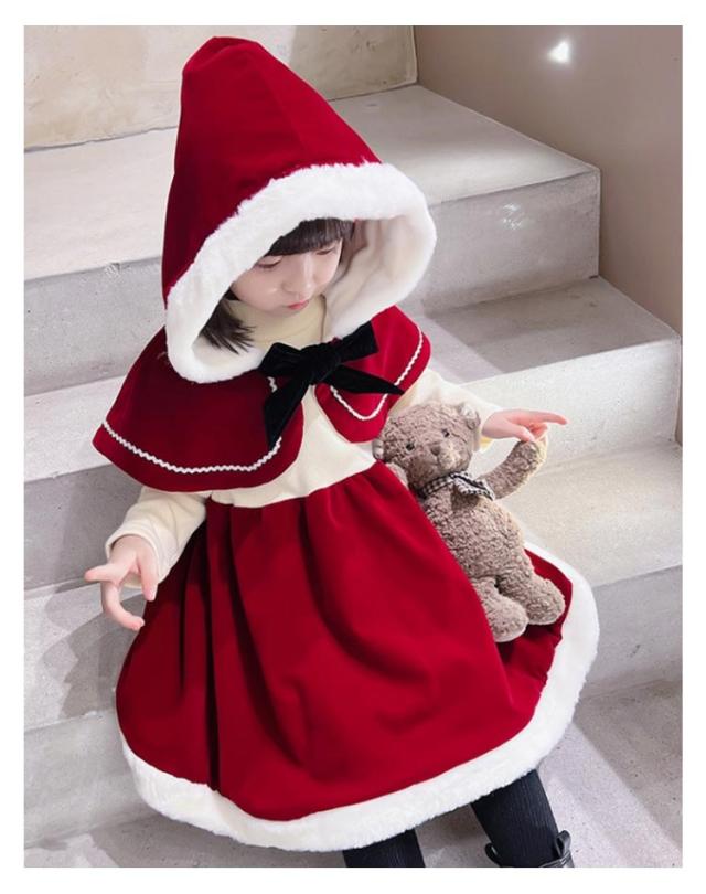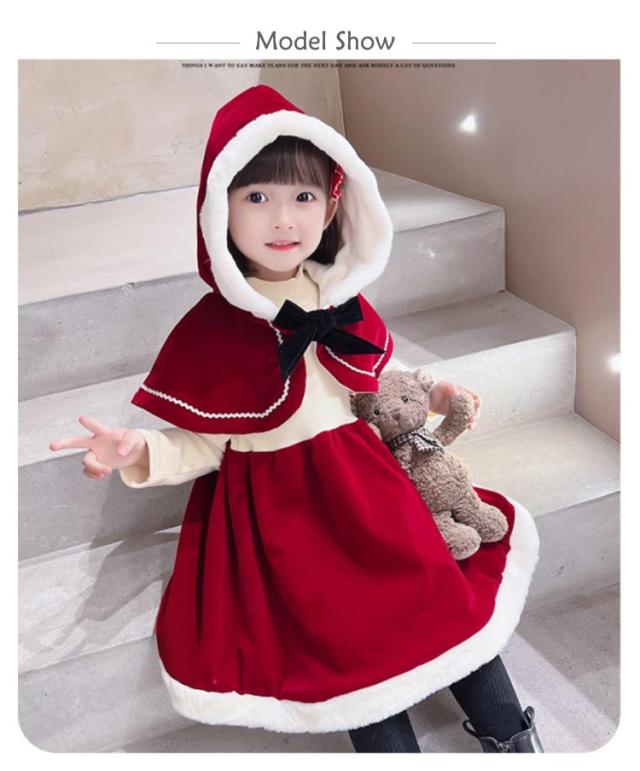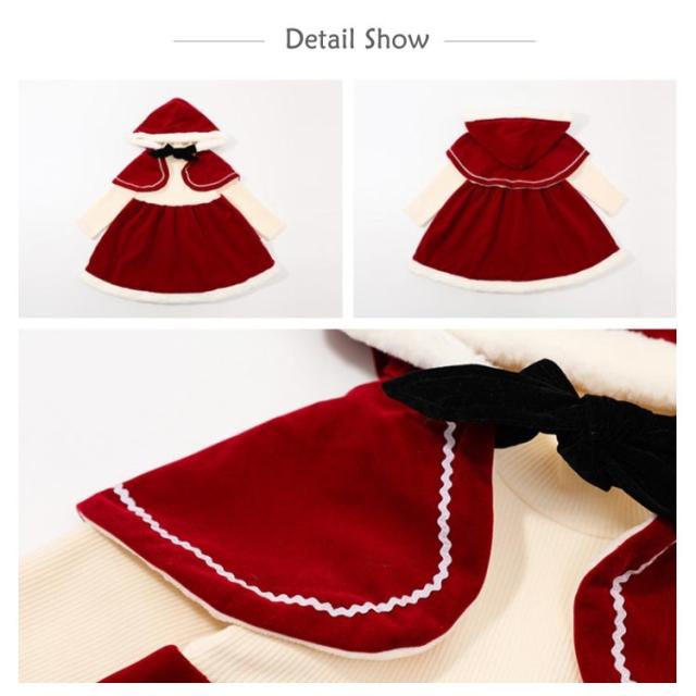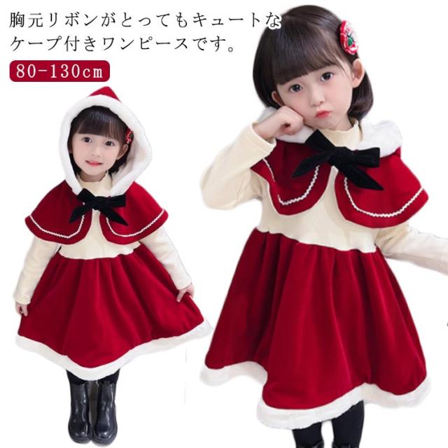 コスチューム ケープ付きワンピース 80 サンタコス ワンピース フード付き サンタ服 サンタ ドレス 仮装 キッズ 衣装 子供 ケープ付きワンピース クリスマス 女の子 子ども 赤ずきん コスプレ ハロウィン 食事会 90 100 110 120 130