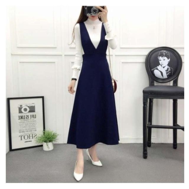 ロング ジャンスカ ジャンスカ 春 大きいサイズ サロペット スカート 着?せ ハイウエスト 体型カバー 無地 Aライン シンプル 可愛い レディース 秋 Vネック 大人 女性 通勤 ロング丈 ギフト プレゼント