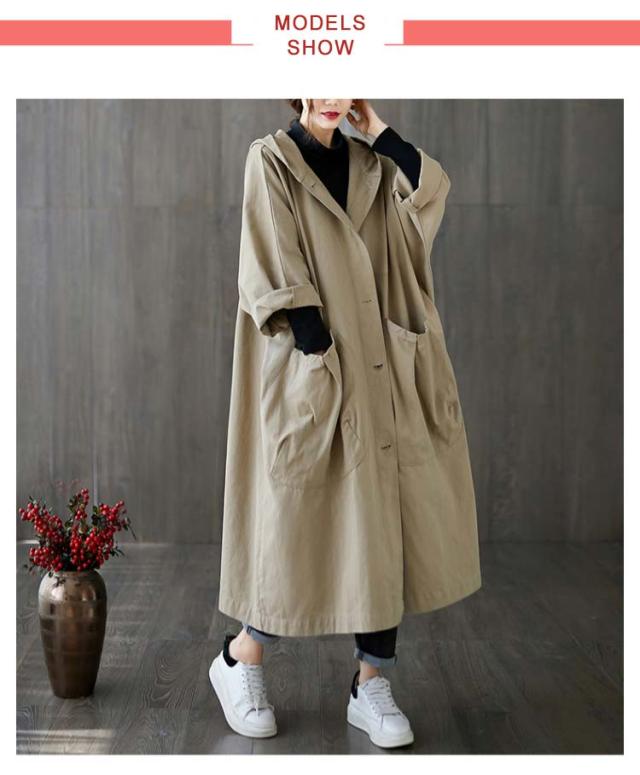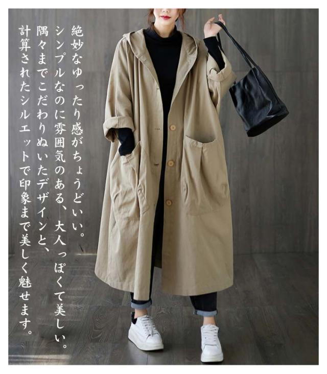 スプリングコート フード付き 春コート ロング丈 体型カバー トレンチコート レディース おしゃれ トレンチコート フリーサイズ ゆったり マキシ丈 コート 秋 オフィス シンプル アウター アウター Aライン 着?せ 無地 シンプル カジュアル 大人 女性