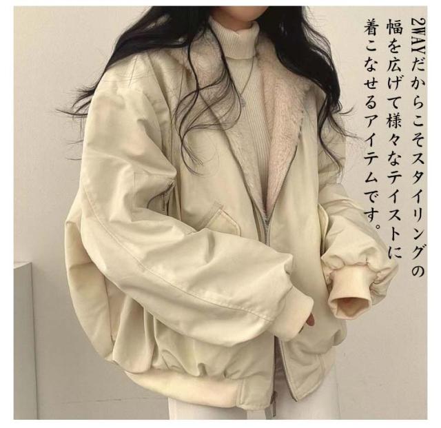 リバーシブル ボアジャケット レディース ふわふわ リバーシブル 長袖 ファージャケット 2way ボアブルゾン 裏ボア 体型カバー アウター あったか もこもこ 暖かい 中綿コート 裏起毛 フード付き ショート丈 コート かわいい プレゼント ギフト