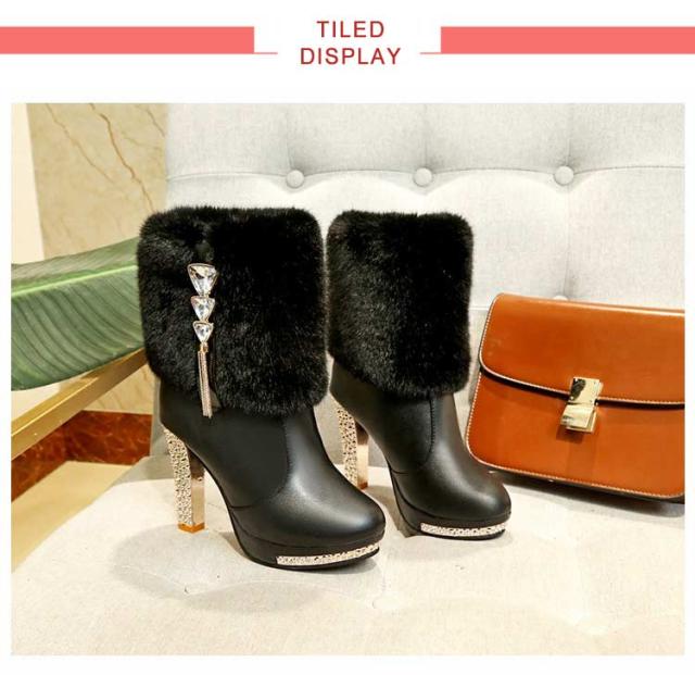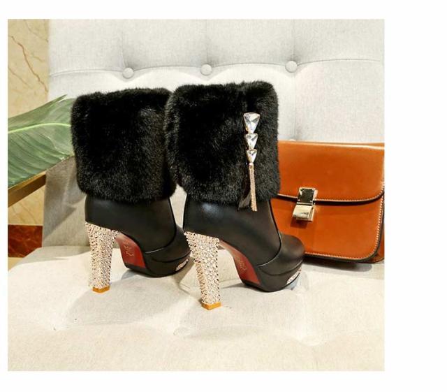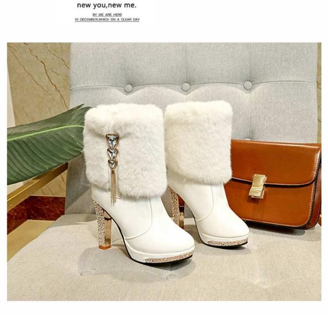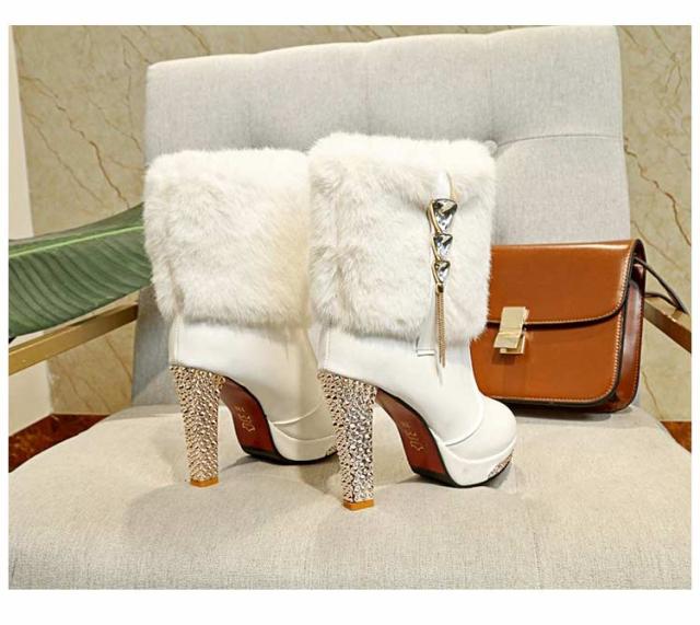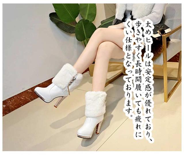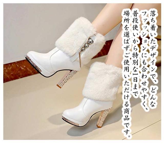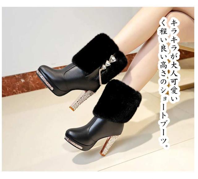 ショートブーツ ヒールブーツ ピンヒール ファーシューズ ハイヒール ファーブーツ かわいい PU 10cm 美脚効果 もこもこ ブーティ 靴 ミドルブーツ 美脚 ファー付き 冬 キラキラ 大人 女性 歩きやすい 滑り止め きれいめ ショートブーツ パーティー ギフト プレゼント
