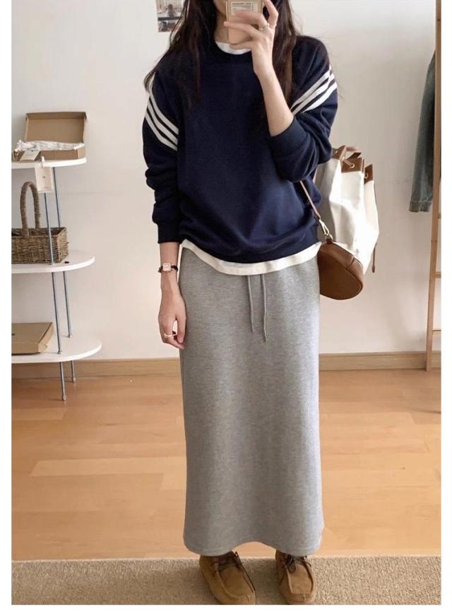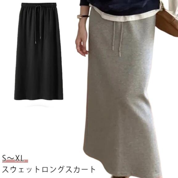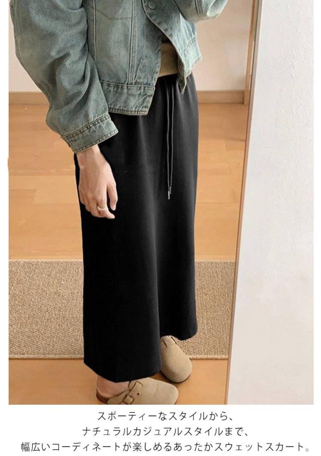 スカート スウェット マキシ丈 冬 オフィスカジュアル 春 ロング ロングスカート マキシスカート 秋 スカート 体型カバー 着?せ スカート カジュアル ボトムス きれいめ 可愛い 大人 ウエストゴム 着やせ おしゃれ レディース シンプル 無地