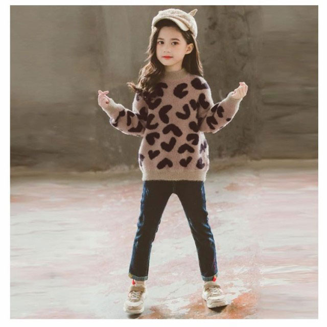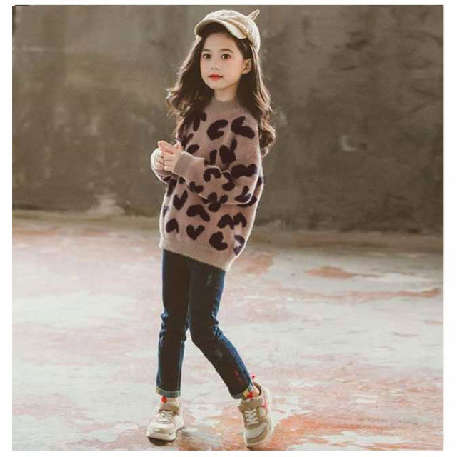 子供服 セーター 女の子 男の子 ヒョウ柄 長袖 ハーフハイネック ニットセーター 子供用 トップス タートルニット ハイネックニット 丸首 長袖 キッズセーター モコモコ 起毛 あったか 暖かい 可愛い 防風 防寒 秋 冬 子ども ジュニア 110 120 130 140 150 160cm