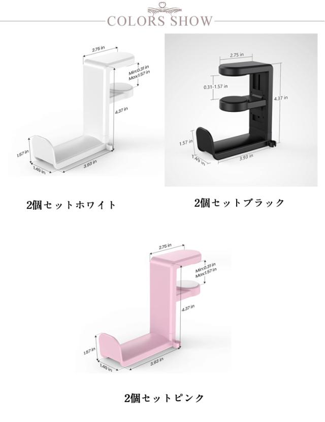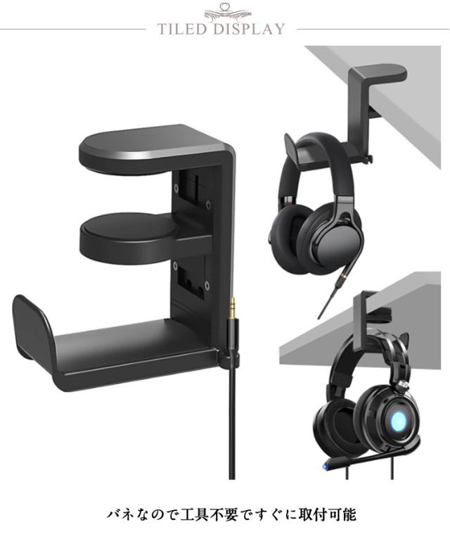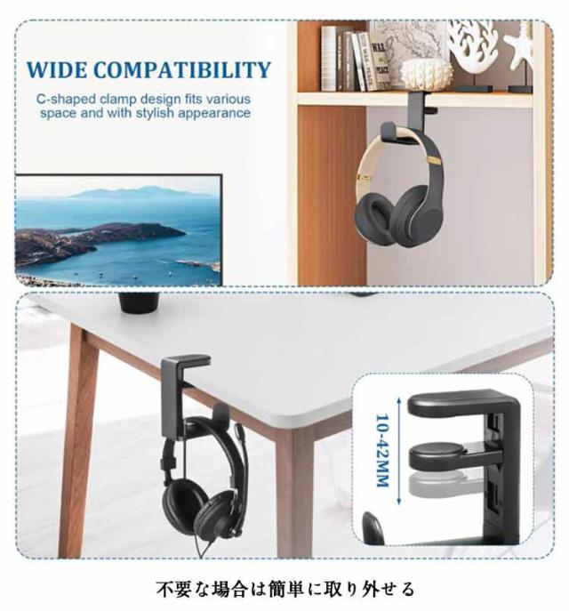 | 便利なヘッドホンスタンド 2個セット バネなので工具不要ですぐに取付可能 不要な場合は簡単に取り外せる 多様性の360°回転 イヤホンコードクリップがあり、ワイヤーを簡単に固定できます | |
