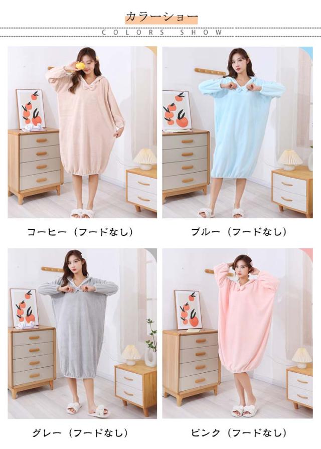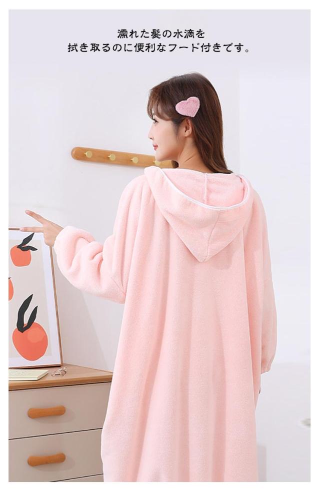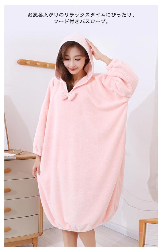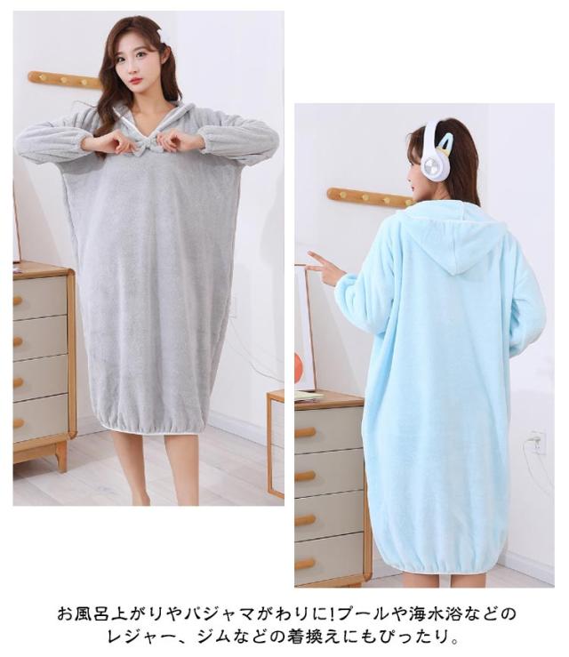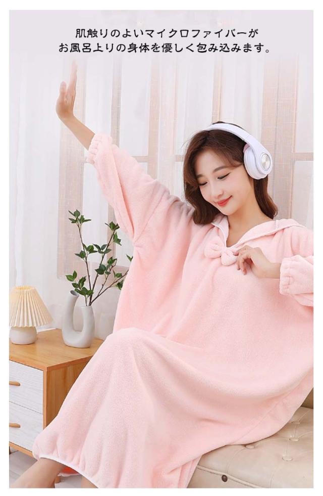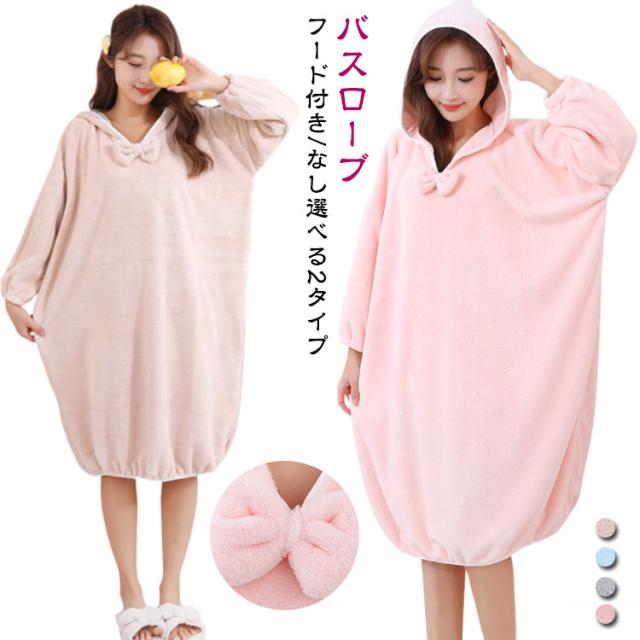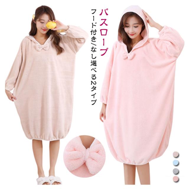 プルオーバー 湯上りタオル ワンピース 湯上り ワンピース バスローブ タオルワンピ 可愛い 海水浴 フード付き フードなし 着るバスタオル マイクロファイバー リボン パジャマ 長袖 ルームウェア お風呂上がり サウナ 温泉 プール