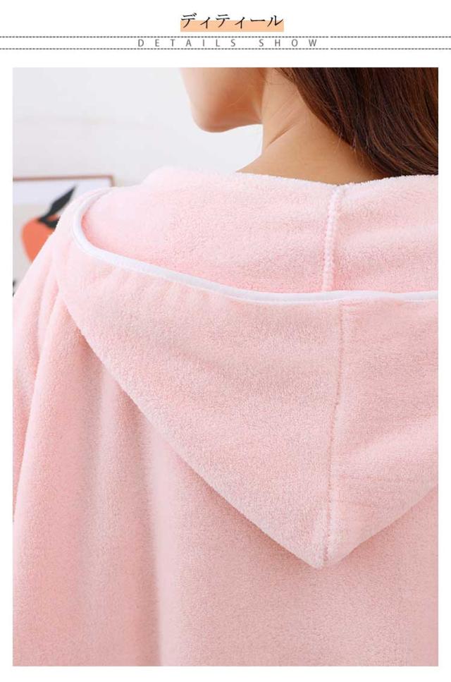 | フード付き/なし選べる2タイプ バスローブ お風呂上がりのリラックスタイムにぴったり、フード付きバスローブ。 濡れた髪の水滴を拭き取るのに便利なフード付きです。 肌触りのよいマイクロファイバーがお風呂上りの身体を優しく包み込みます。 汗もしっかり吸って、素早く湿気を逃がすので蒸れにくく、さわやかな着心地です。 ゆったりとしたシルエットのワンピースは身体につかず離れず、肩も露出しない為、身体が冷えすぎません。 お風呂上がりやパジャマがわりに!プールや海水浴などのレジャー、ジムなどの着換えにもぴったり。 | |