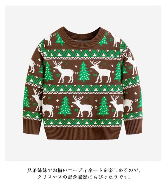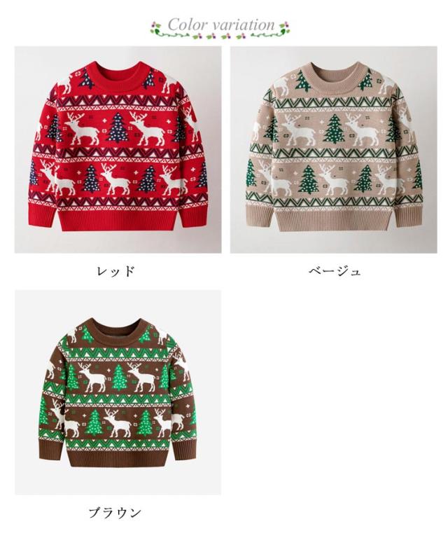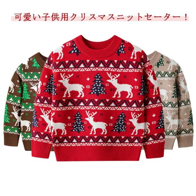 キッズ 女の子 ニットセーター クリスマスセーター プルオーバー クリスマス 男の子 個性的なデザイン トナカイ柄 セーター クリスマスセーター 長袖 カジュアル 洋服 ベビー 可愛い ギフト