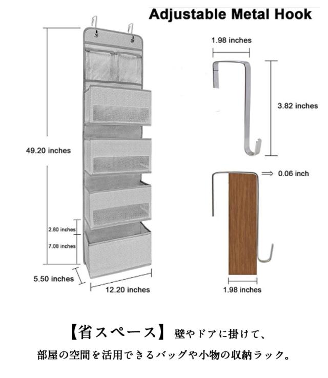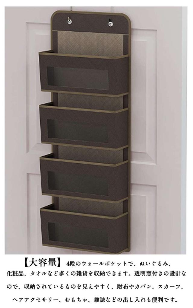 | 【省スペース】壁やドアに掛けて、部屋の空間を活用できるバッグや小物の収納ラック。 【大容量】4段のウォールポケットで、ぬいぐるみ、化粧品、タオルなど多くの雑貨を収納できます。透明窓付きの設計なので、収納されているものを見えやすく、財布やカバン、スカーフ、ヘアアクセサリー、おもちゃ、雑誌などの出し入れも便利です。 【穴あけ不要 賃貸もOK】ドア掛けフックと粘着フック付き、ドアの後ろやワードローブの後ろなどどこにでも取り付けることができます。書斎、寝室、リビング、キッズルーム、バスルーム、保育園、オフィス、作業場など、小物の整理整頓に便利です。 【折りたたみ式で保管に便利】使わない時はコンパクトに折り畳めるので、収納場所をとらず、部屋のスペースを最大限に活用することができます。 | |