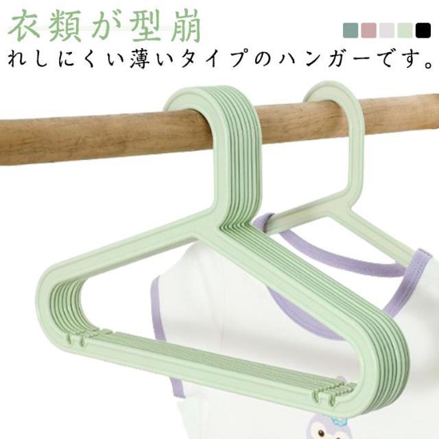 | 衣類が型崩れしにくい薄いタイプのハンガーです。 薄いタイプだからクローゼットにすっきりと収納可能。 柔軟性があり丈夫なPP素材を使用! 服の肩に近い形状なので、服がよれる事を防ぎます。 | |