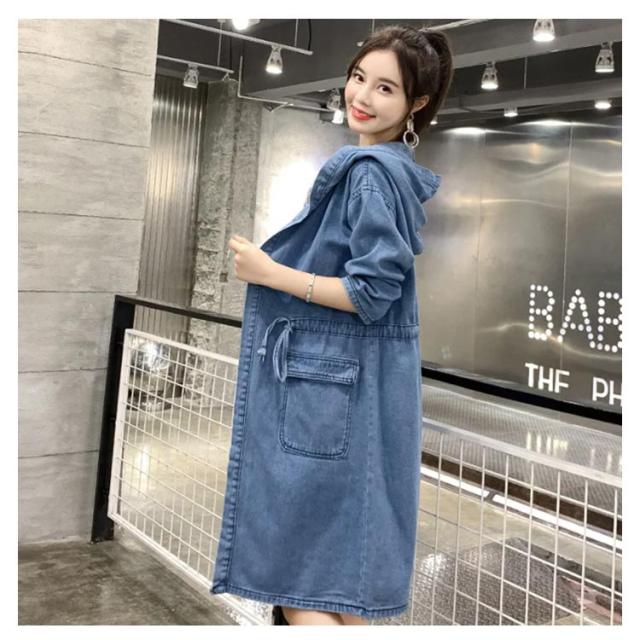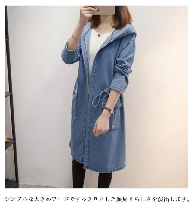 ゆったり Gジャン トレンチコート フード付き デニム チェスターコート フード付き ロングコート レディース デニム ジャケット デニムコート コート 送料無料 ビッグシルエット オーバーサイズ デニム 春コート スプリングコート 20代 30代 40代 カジュアル