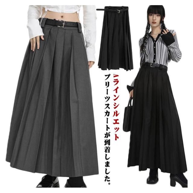 プリーツスカート 膝下 Aラインスカート ロングスカート フレアスカート ハイウエストスカート スカート プリーツ 秋 S プリーツスカート 体型カバー 秋冬 制服 大人 マキシスカート ロング きれいめ 大人カジュアル ブラック グレー 春 M L XL 2XL