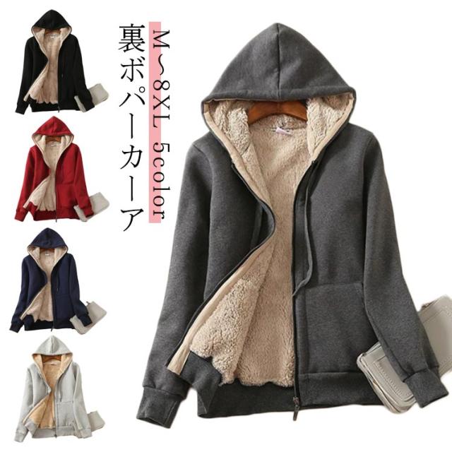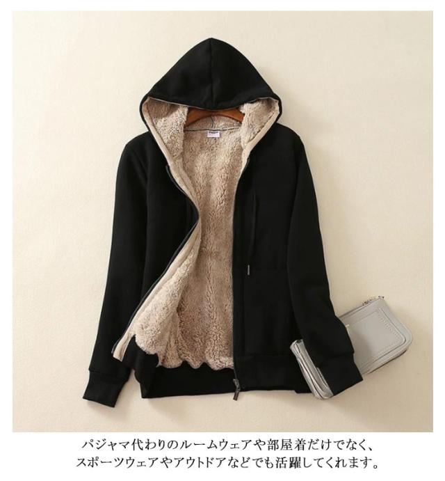 ジップパーカー 厚手 裏ボア 長袖 トップス 防寒 パーカー 秋冬 レディース ボアパーカー 上着 防風 暖かい ジップアップパーカー ジャケット ジャージ アウター 裏ボア 部屋着 無地 フード付き コート カジュアル 男女兼用