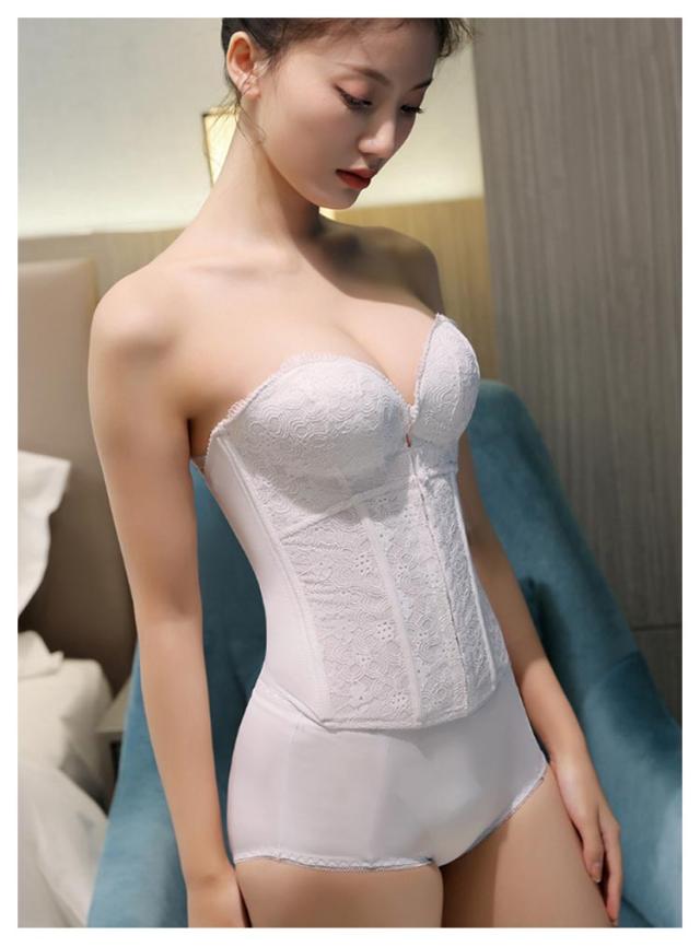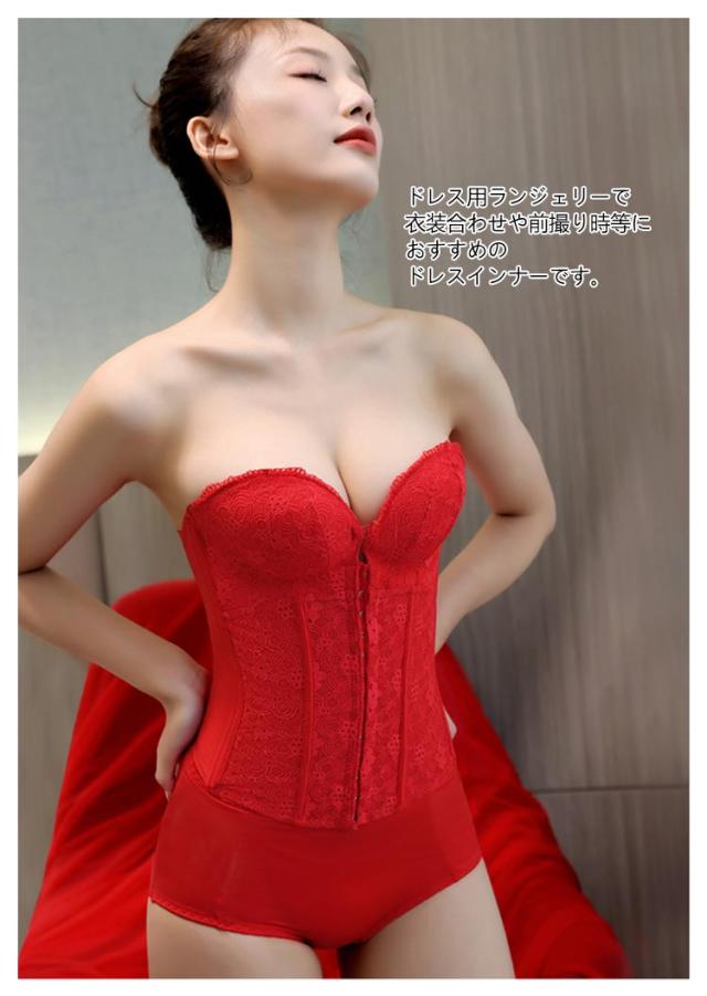 | ウエディングスタイルを美しく演出してくれるインナーです。 レースデザインを採用して、上品で綺麗なデザイン、大人の色気を引き出します。 両サイドはポーンがしっかりとサポートし、理想的なボディラインを作り出します。 フロントホックで上がパカパカせず、谷間メイクの同時に安定感もプラス! バックストライプが付き、滑り止めがあり、幅も広めなのでしっかりしています。 バストアップとウエストの引き締めで、より美しいボディラインを実現します。 手の型のようなパッドによって、下からバストを優しく持ち上げ魅力的な谷間メイク。 ドレス用ランジェリーで衣装合わせや前撮り時等におすすめのドレスインナーです。 | |