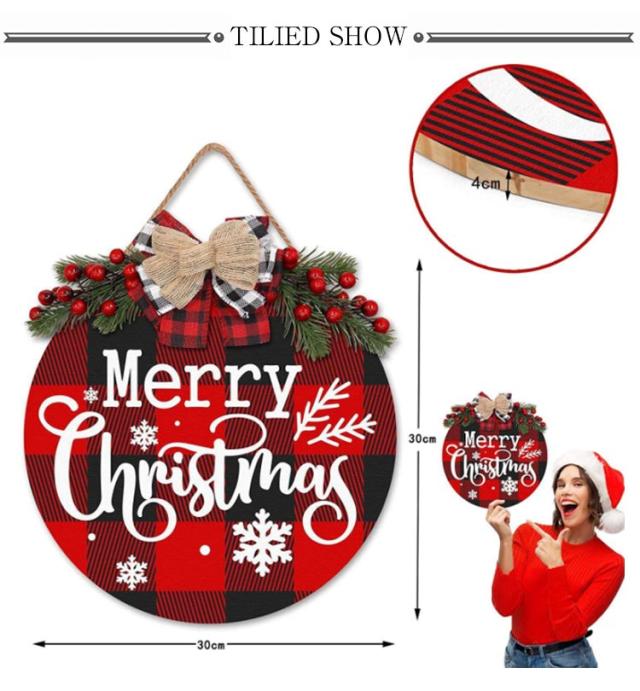 | あたたかみのある木材製クリスマスリース。【直径30cm・厚さ4cm】 ナチュラルな木材で作られたこのクリスマス木製ドアサインは耐久性と寿命が保証されており、お祝いの装飾に信頼できる選択肢になります。 屋外の飾りや、ドアや壁などに掛けてお部屋のインテリアとしても楽しめます。 ひとつ飾るだけで、クリスマスの雰囲気を演出できます。 | |