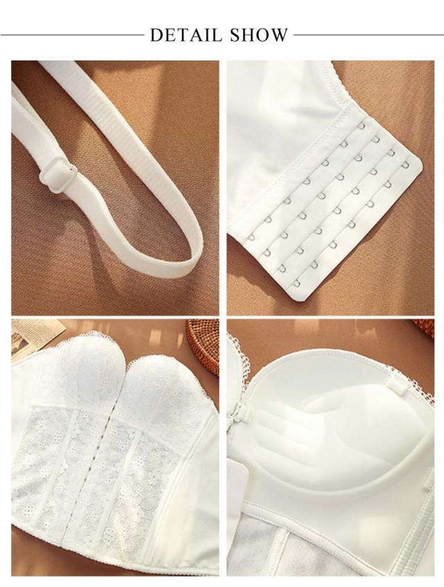 | ウエディングスタイルを美しく演出してくれるインナーです。 レースデザインを採用して、上品で綺麗なデザイン、大人の色気を引き出します。 両サイドはポーンがしっかりとサポートし、理想的なボディラインを作り出します。 フロントホックで上がパカパカせず、谷間メイクの同時に安定感もプラス! バックストライプが付き、滑り止めがあり、幅も広めなのでしっかりしています。 バストアップとウエストの引き締めで、より美しいボディラインを実現します。 手の型のようなパッドによって、下からバストを優しく持ち上げ魅力的な谷間メイク。 ドレス用ランジェリーで衣装合わせや前撮り時等におすすめのドレスインナーです。 | |