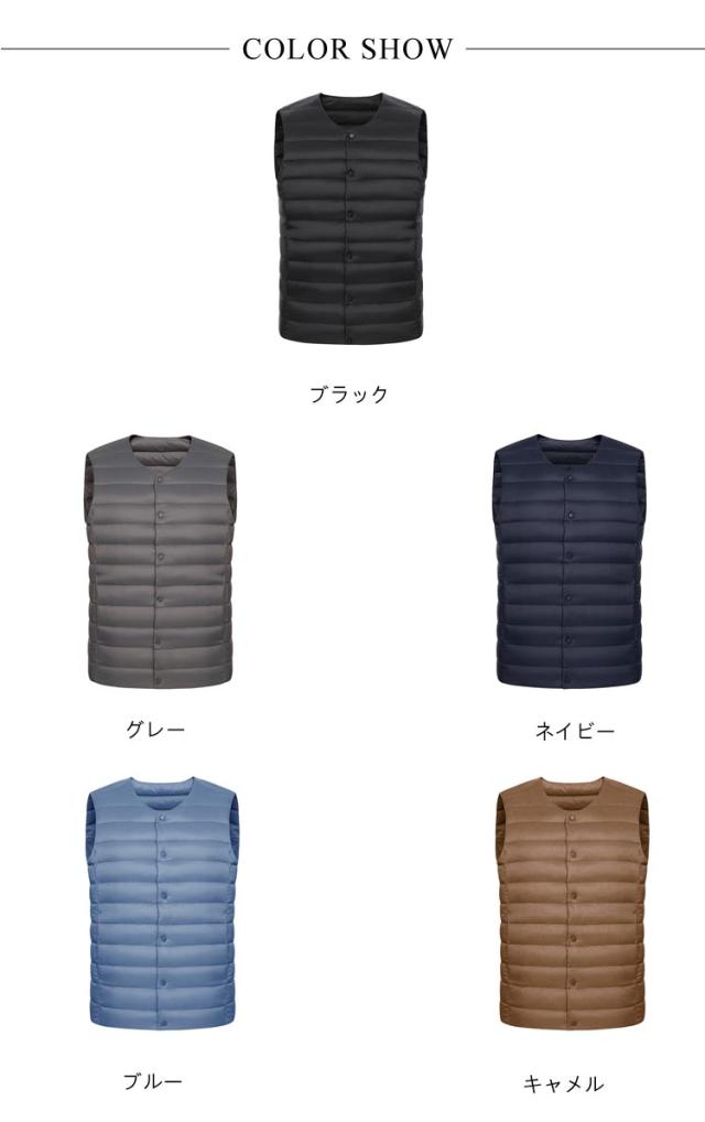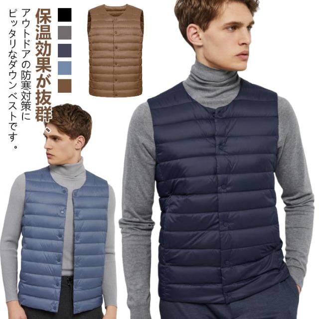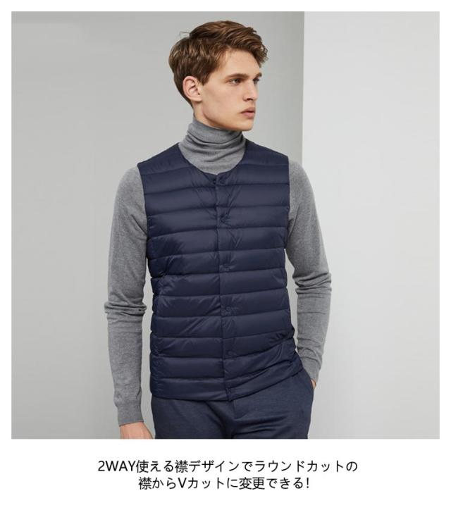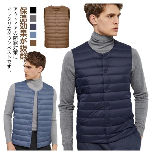 ポケット付き 2WAY 防寒 ダウンベスト スーツベスト ベスト メンズ インナーベスト クールネック 軽量 暖かい カジュアル 薄手 Vネック アウトドア 登山 あったか 釣り ゴルフ スポーツ お洒落
