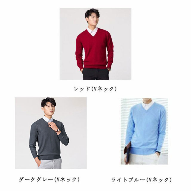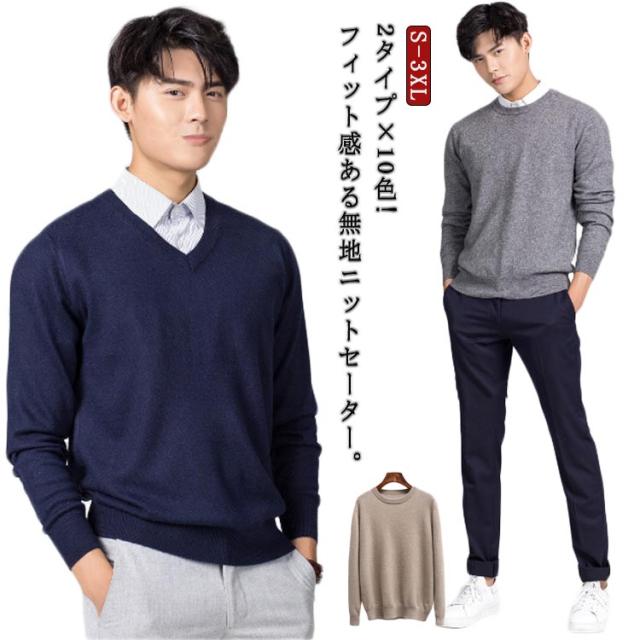 2タイプ×10色!メンズセーター Vネック ラウンドネック スクールセーター ニット セーター メンズ 男子 無地 紳士 ビジネス 学校 通学 通勤 会社 高校生 大きサイズ 秋 冬 防寒 洗える 送料無料