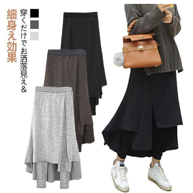 スカート付レギンス レギンス付きスカート 薄手 レディース スパッツ レイヤード風 重ね着 キュロット ロングスカート アシンメトリー スカート フレアスカート Aライン ボトムス レギパン 春秋 ウエストゴム ストレッチ 大きいサイズ 体型カバー 大人 可愛い 送料無料