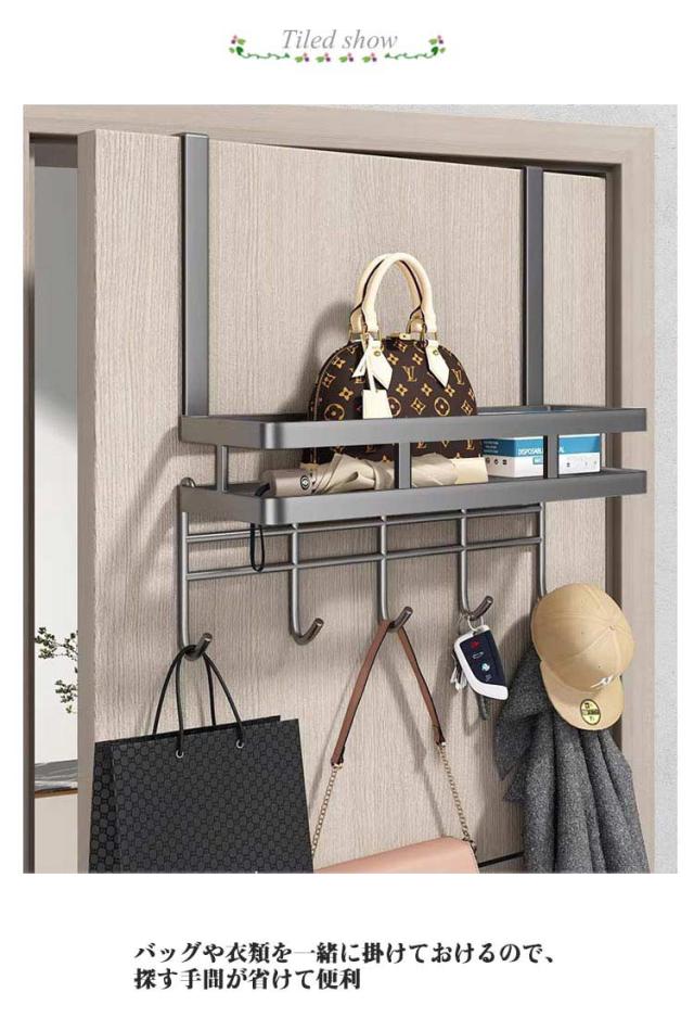 | ドアやクローゼットの折れ戸などに引っ掛けて使うドアフック 設置場所を選ばないシンプル設計 厚さ3.5-5cmのドア使用 工具を使わなくても取付け出来て移動も簡単 バッグや衣類を一緒に掛けておけるので、探す手間が省けて便利 | |